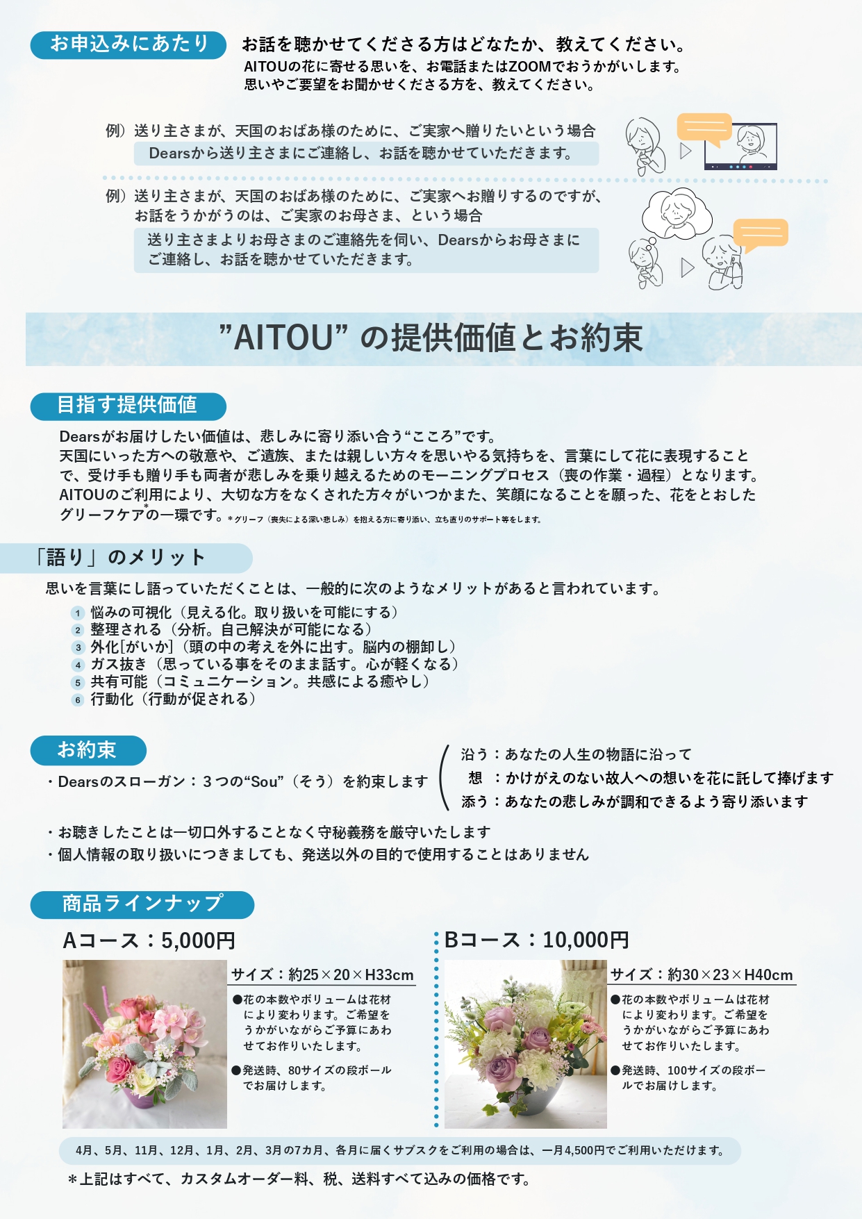 このAITOUとは、天国にいった大切な方との思い出やお好きだった花、