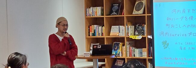 濱波大翔さんは河内町出身で河内駅前のカフェ「Sabaijai」を経営されています。