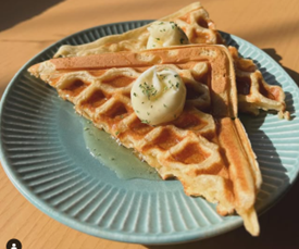 米粉、タピオカ粉、もち粉、栄養価が高いアローカナの卵、ココナッツミルクなどを使用しているグルテンフリーのワッフルもおすすめ。