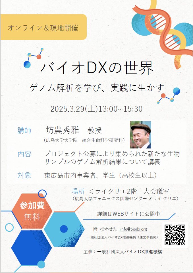 一般社団法人バイオDX推進機構によるセミナー「バイオDXの世界 ゲノム解析を学び、実践に生かす」を開催します。