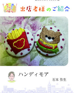 マルシェではこども向けで、可愛い刺繍の生地を使ってくるみボタンでヘアゴム作りと