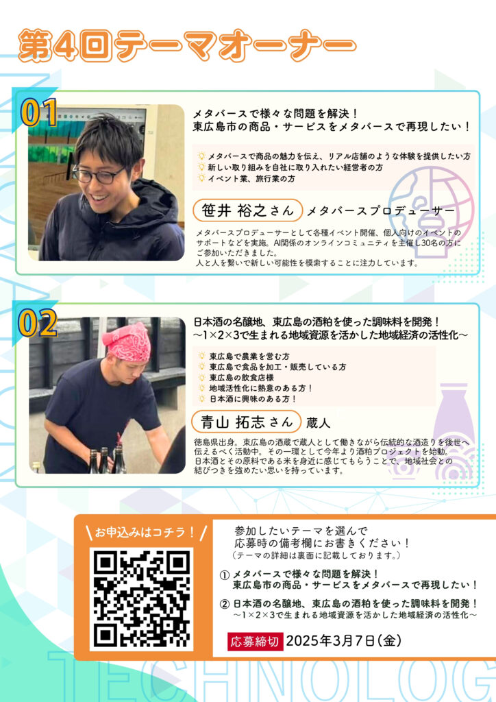 ①さん:笹井さん『 メタバースで様々な問題を解決!東広島市の商品・サービスをメタバースで再現したい!』