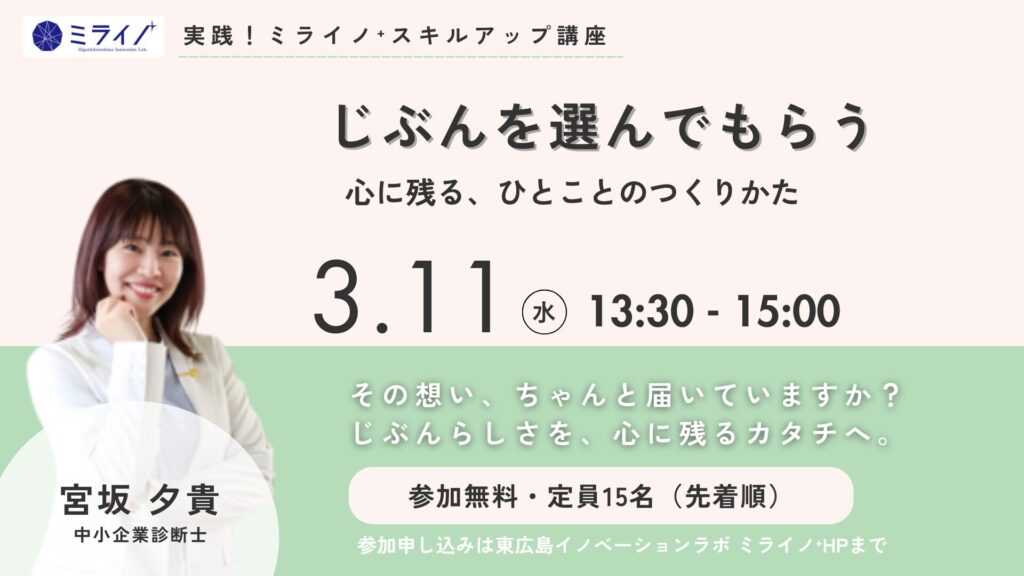 実践!ミライノ⁺スキルアップ講座 じぶんを選んでもらう~心に残る、ひとことのつくりかた ~〈2026年3月〉