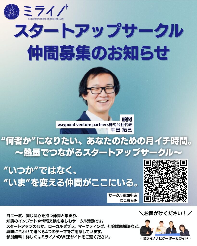 スタートアップサークル 12/18(木) 13:00~18:00開催のお知らせ(平田 拓己 氏)