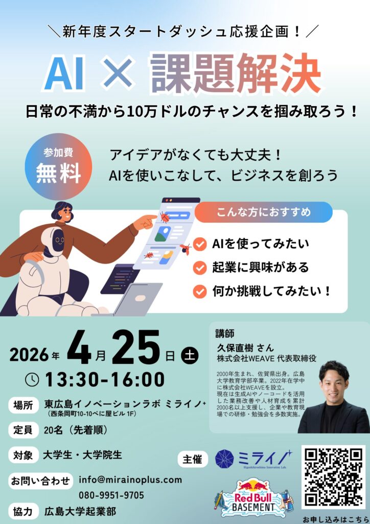 📍会場: 東広島イノベーションラボ ミライノ⁺(西条岡町10-10 べに屋ビル1F)