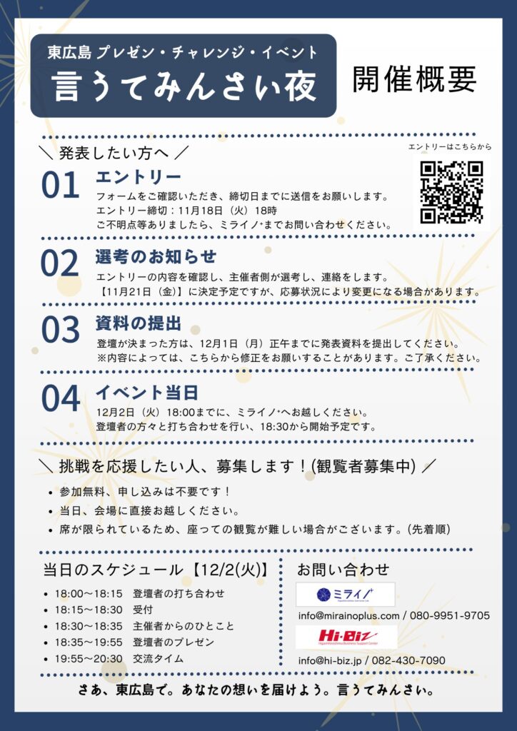 『言うてみんさい夜2025「冬」』は、東広島で開催されるプレゼン・チャレンジ・イベントです。