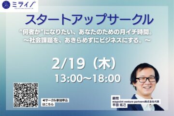イベントスタートアップサークル 2/19(木) 13:00~18:00開催のお知らせ(平田 拓己 氏)