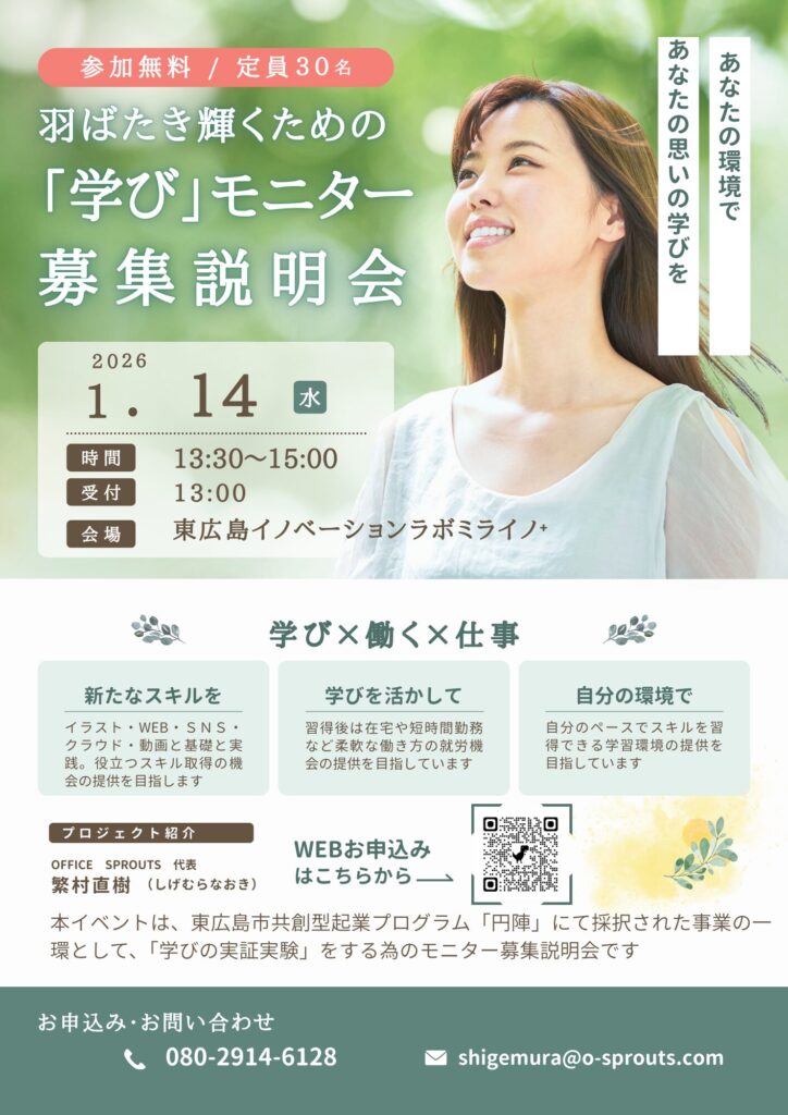 【告知:ご案内】「学びの場」学びモニター募集 説明会