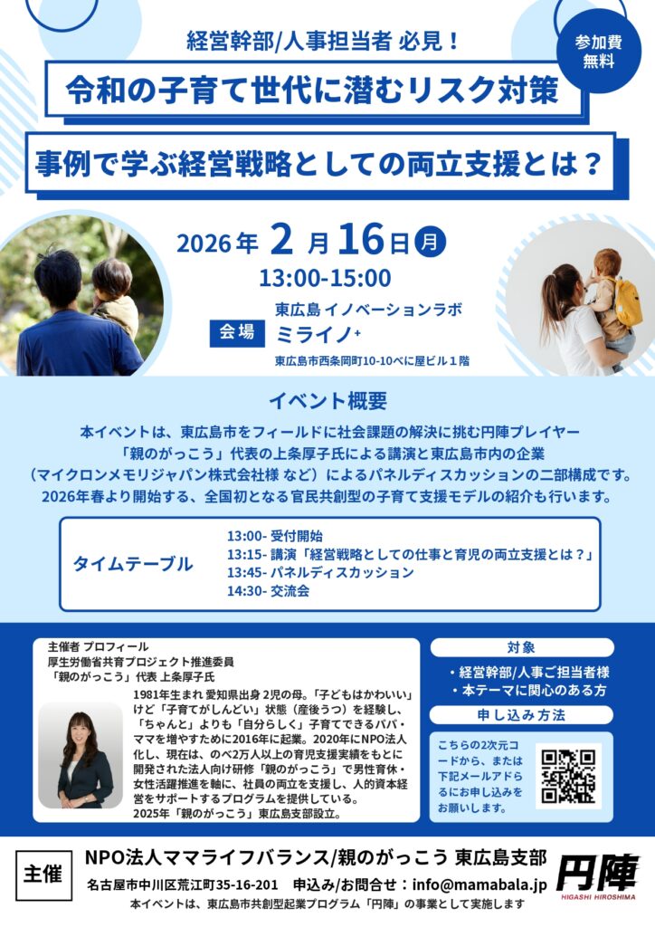 【告知】企業様向けイベント:事例で学ぶ経営戦略としての仕事と育児の両立支援とは?